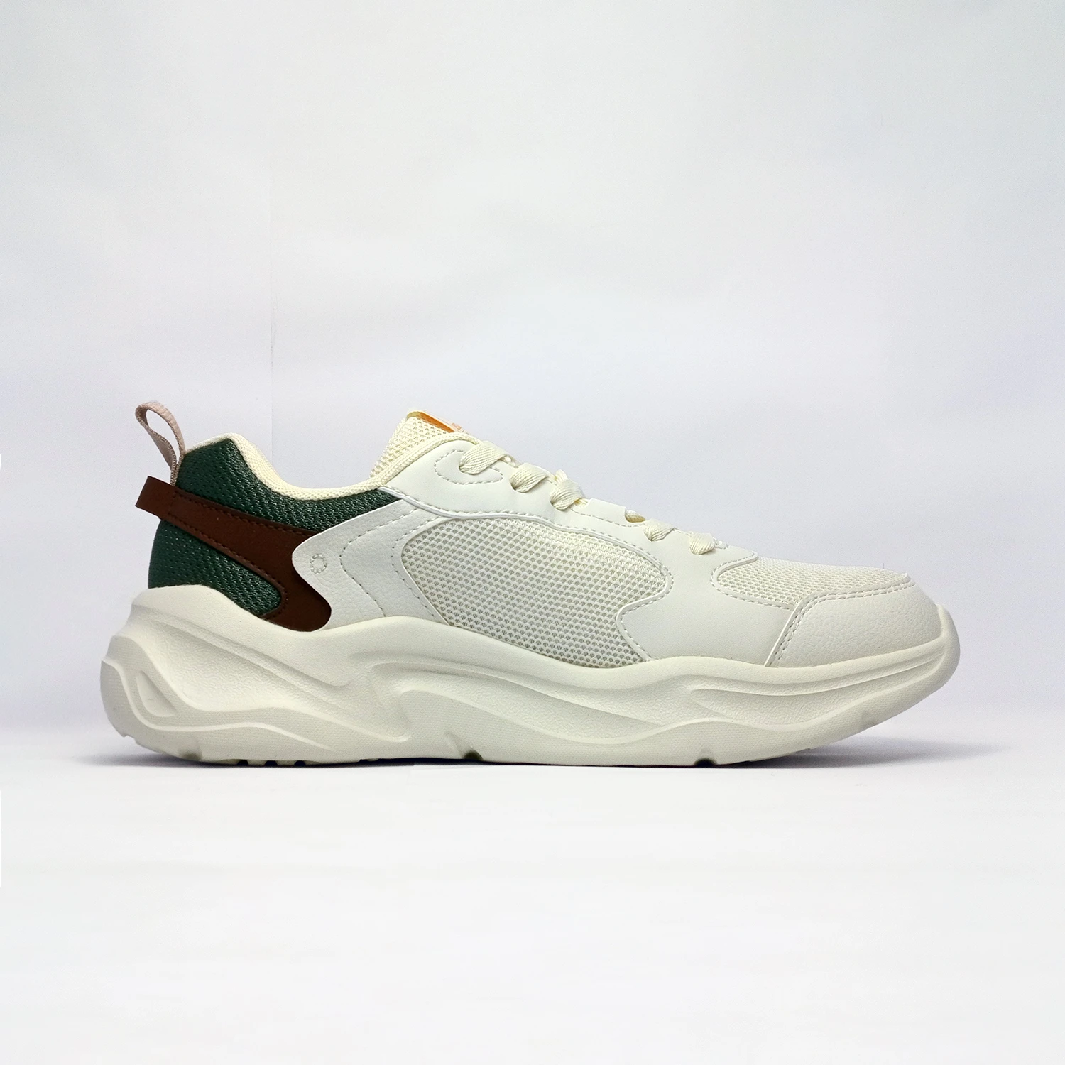 رویه کفش ترکیبی از مش، چرم مصنوعی و اسپاندکس است که هم از نظر زیبایی و هم از نظر عملکرد، فوقالعاده عمل میکنه. این ساختار چندلایه باعث میشه کفش کاملاً تنفسپذیر باشه و در برابر رطوبت مقاوم بمونه. همچنین برای استفاده طولانیمدت هم خیلی مناسب هست. اگر به دنبال کفشی میگردید که در هوای گرم پاتون رو خنک نگه داره و همزمان ظاهر خاصی به استایل روزمره شما بده، این مدل میتونه دقیقاً همون چیزی باشه که میخواهید.