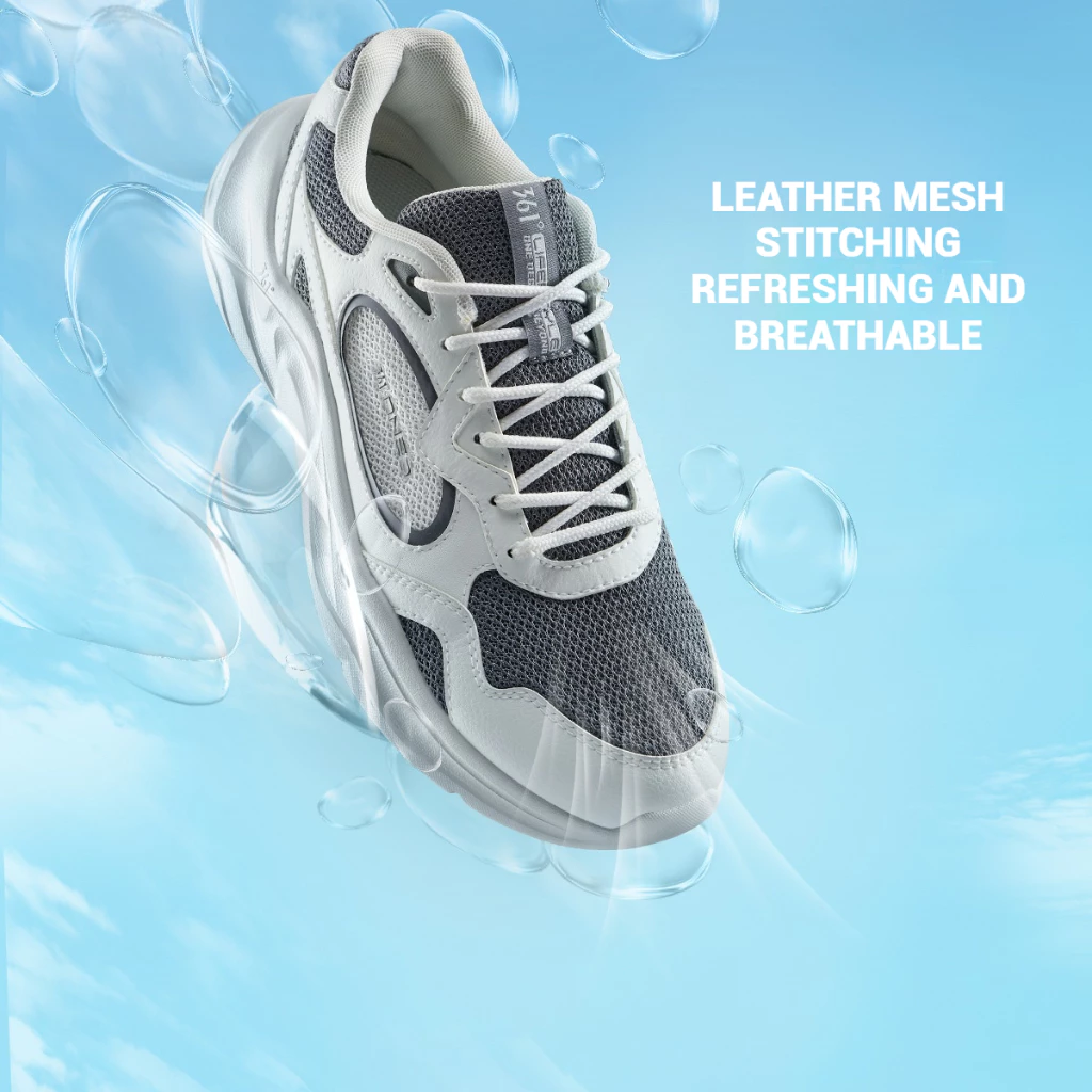 رویه کفش ترکیبی از مش، چرم مصنوعی و اسپاندکس است که هم از نظر زیبایی و هم از نظر عملکرد، فوقالعاده عمل میکنه. این ساختار چندلایه باعث میشه کفش کاملاً تنفسپذیر باشه و در برابر رطوبت مقاوم بمونه. همچنین برای استفاده طولانیمدت هم خیلی مناسب هست. اگر به دنبال کفشی میگردید که در هوای گرم پاتون رو خنک نگه داره و همزمان ظاهر خاصی به استایل روزمره شما بده، این مدل میتونه دقیقاً همون چیزی باشه که میخواهید.