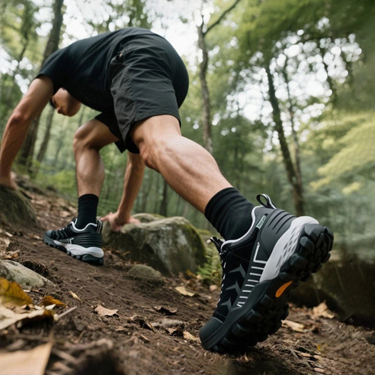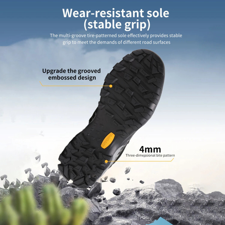 کفی ضخیم و ضدلغزش با آجهای عمیق، چسبندگی عالی روی سطوح مختلف (خاکی، سنگی، مرطوب) ایجاد میکند و باعث ثبات بیشتر پا میشود. همچنین لایه میانی نرم، فشار وارد بر پا و زانو را کاهش داده و راحتی طولانیمدت را تضمین میکند.
