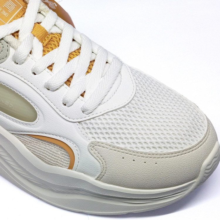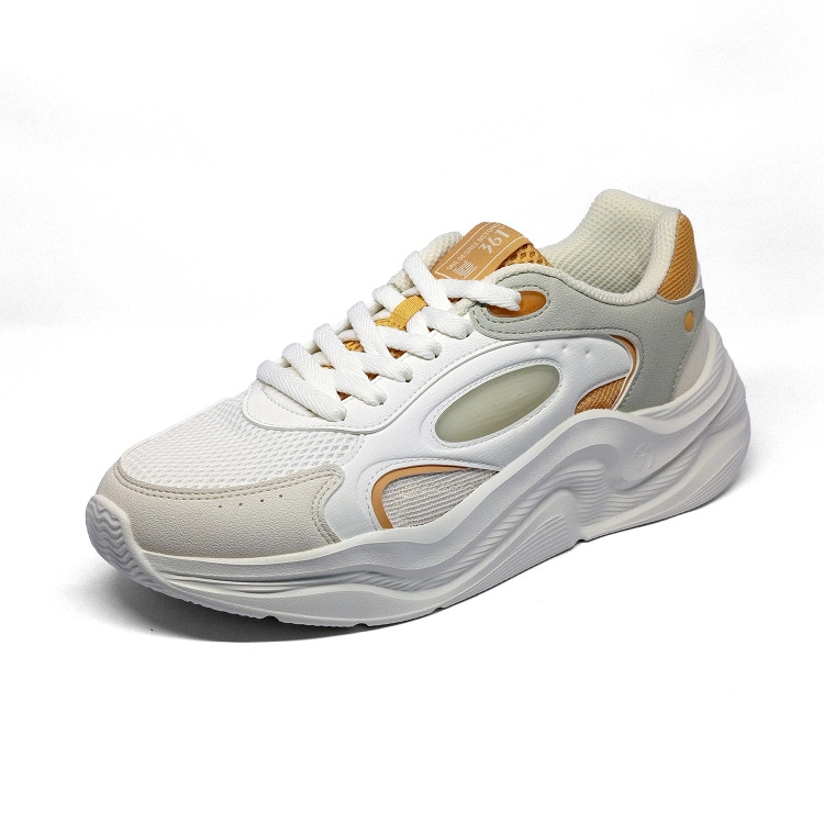رویه کفش ترکیبی از مش، چرم مصنوعی و میکروفایبر است که هم از نظر زیبایی و هم از نظر عملکرد، فوقالعاده عمل میکنه. این ساختار چندلایه باعث میشه کفش کاملاً تنفسپذیر باشه و در برابر رطوبت مقاوم بمونه. همچنین برای استفاده طولانیمدت هم خیلی مناسب هست. اگر به دنبال کفشی میگردید که در هوای گرم پاتون رو خنک نگه داره و همزمان ظاهر خاصی به استایل روزمره شما بده، این مدل میتونه دقیقاً همون چیزی باشه که میخواهید.