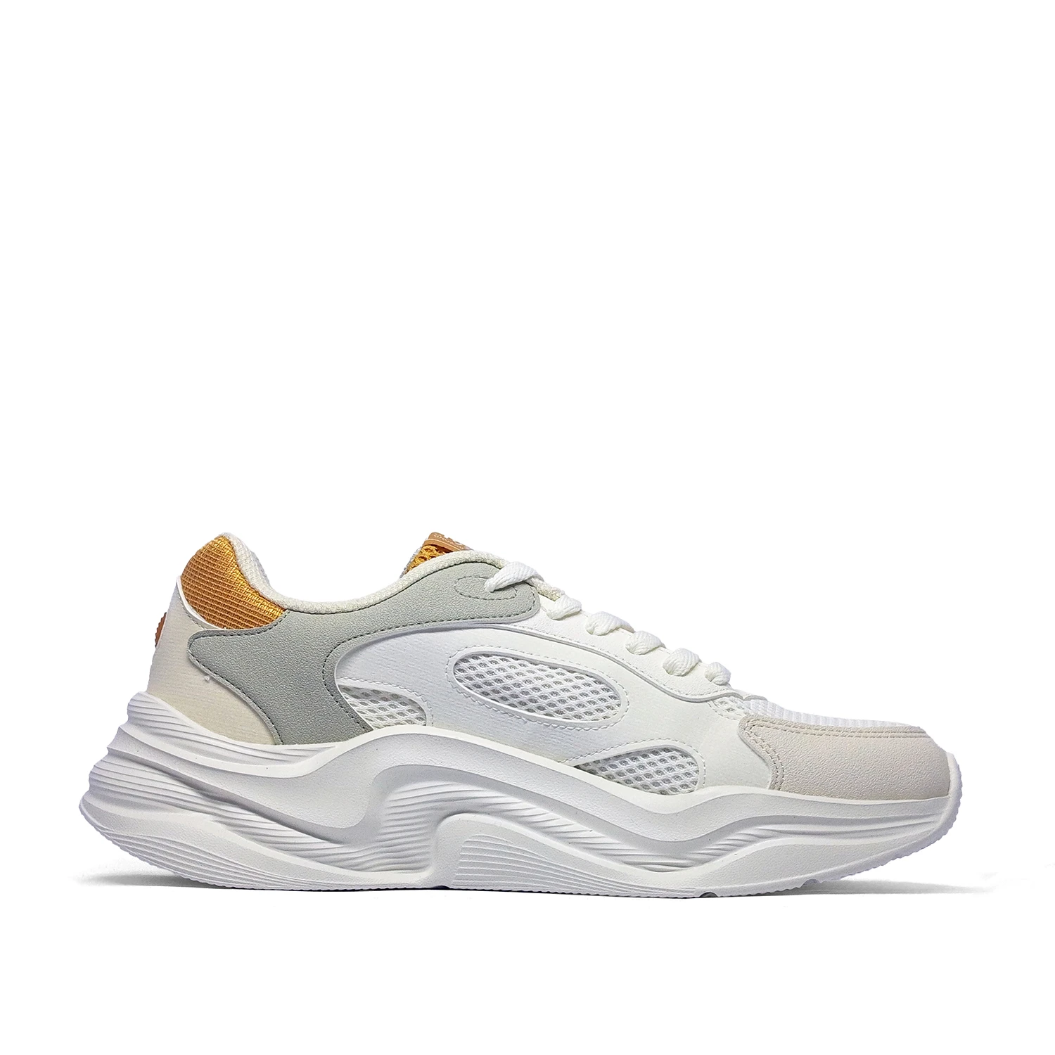 رویه کفش ترکیبی از مش، چرم مصنوعی و میکروفایبر است که هم از نظر زیبایی و هم از نظر عملکرد، فوقالعاده عمل میکنه. این ساختار چندلایه باعث میشه کفش کاملاً تنفسپذیر باشه و در برابر رطوبت مقاوم بمونه. همچنین برای استفاده طولانیمدت هم خیلی مناسب هست. اگر به دنبال کفشی میگردید که در هوای گرم پاتون رو خنک نگه داره و همزمان ظاهر خاصی به استایل روزمره شما بده، این مدل میتونه دقیقاً همون چیزی باشه که میخواهید.
