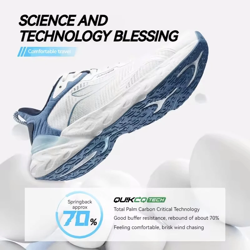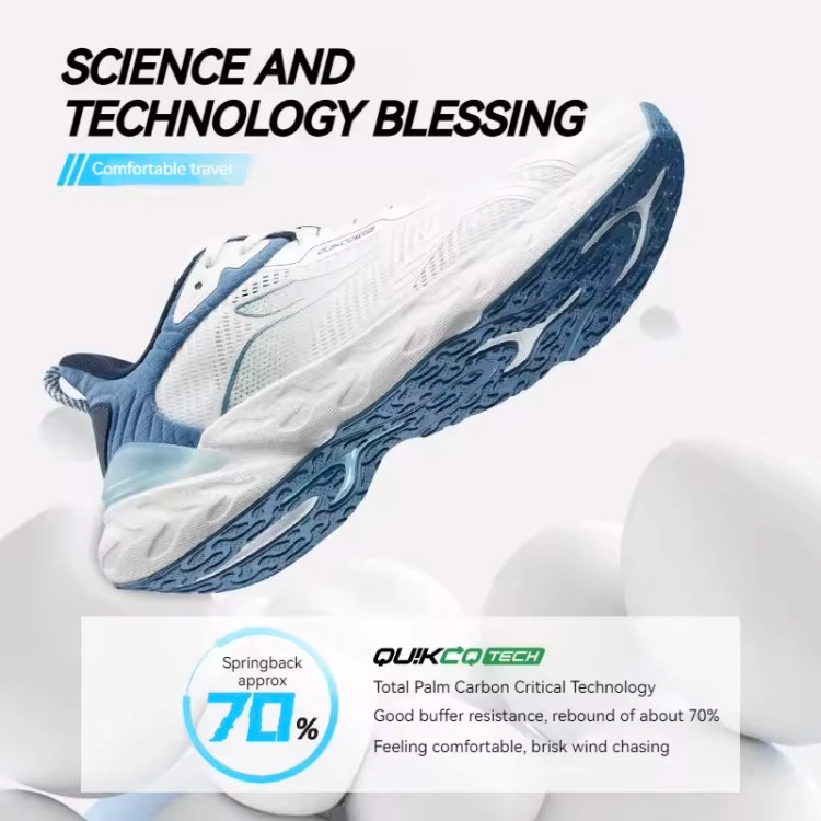 زیرهی این کفش 361 درجه با تکنولوژی QuikCQ tech ساخته شده که تا 70 درصد راختی کتونی رو بیشتر کرده و باعث میشه کفش فوقالعاده انعطافپذیر و سبک باشه — انگار چیزی پات نیست! این زیره QuikSpring lite+ ترکیبی از فوم EVA و پلیاورتانه؛ یعنی هم نرم و سبک، هم محکم و بادوامه.